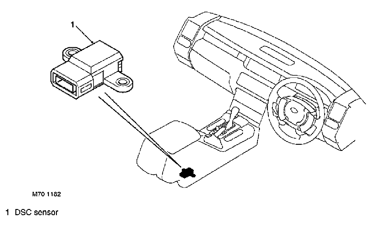 Located under the center console, the dynamic stability control sensor provides two inputs to the ABS ECU, lateral acceleration and rotational rate. The sensor is isolated from body/chassis vibrations through its rubber mounting.