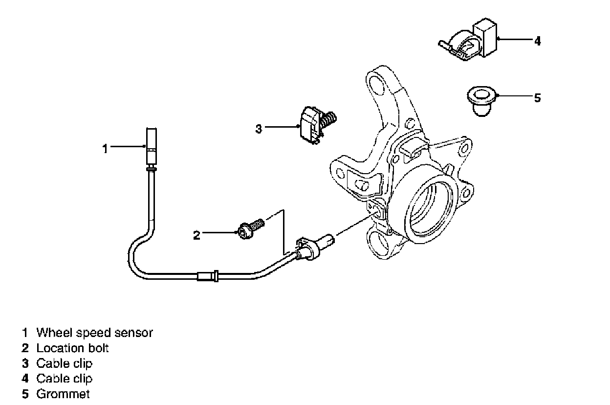 The wheel speed sensors are 2 wire Hall Effect type sensors. These sensors picks up on a 48 pulse incremental wheel speed sensor pole wheel on the drive shaft. 48 pulses = one complete wheel revolution. The sensor receives a stabilized 8 volt power supply to hall element on one wire, ground path for sensor through second wire back to the ABS ECU. The signal is generated by the pulse wheel affecting voltage flow through the hall element creating a low of 0.75 and a high of 2.5 volts. The sensors provide immediate vehicle speed recognition.