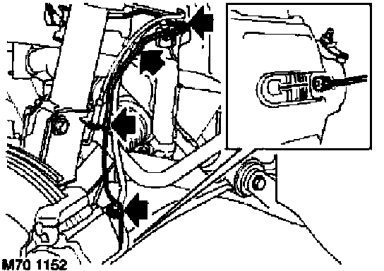 4. Release sensor lead from body bracket, clip, brake hose bracket and bleed screw dust cap.