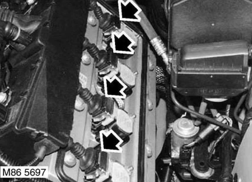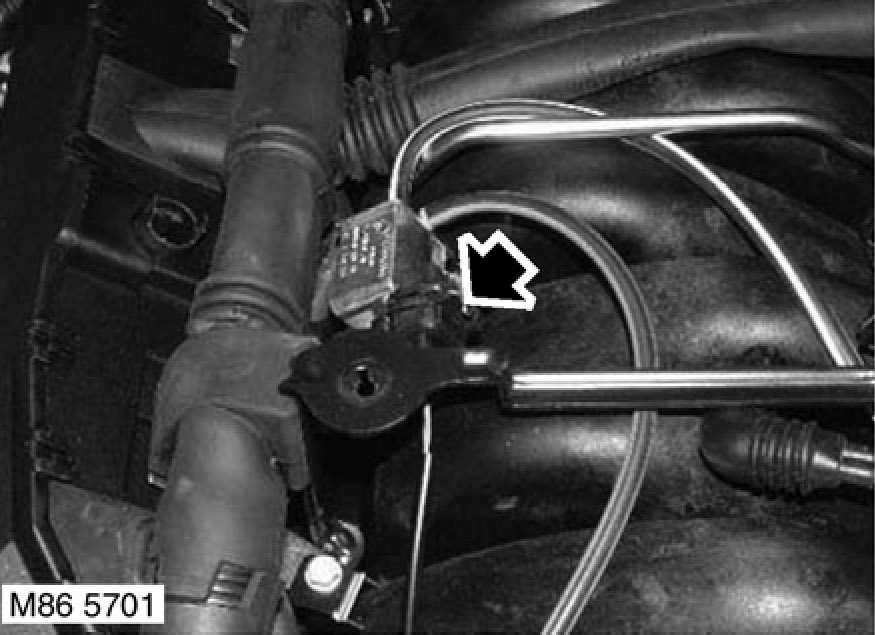 40. Remove bolt securing fuel rail to inlet manifold and remove fuel rail with injectors.