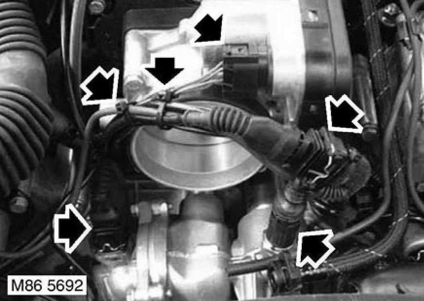 8. Fit throttle housing to inlet manifold and tighten 4 bolts to 10 Nm (7 ft. lbs.).