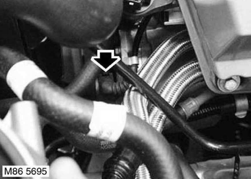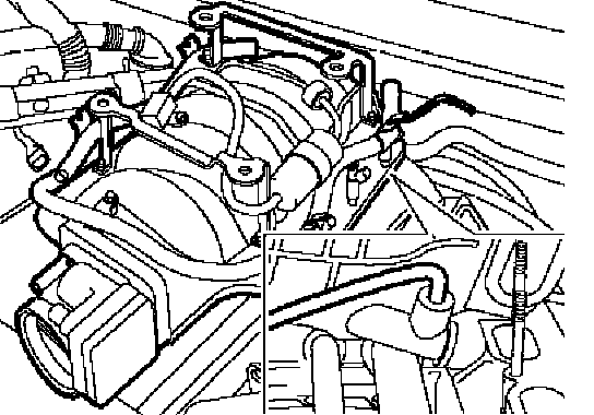 32. Fit fuel hose and mounting bracket to LH fuel injector harness securing stud.