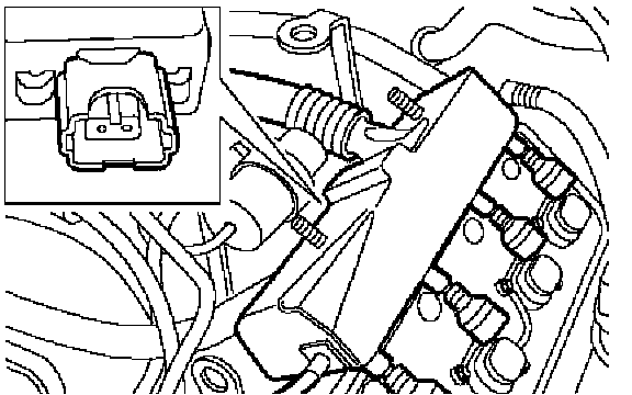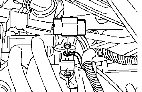 21. Remove SAI solenoid valve from RH fuel injector harness securing stud.