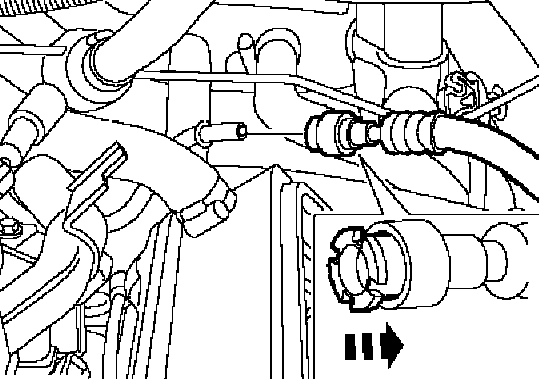 33. Remove clip and disconnect purge solenoid valve vacuum hose. Disconnect SAI vacuum pipe.