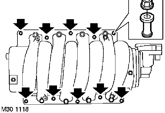 16. Fit 10 spacers and tighten 10 inlet manifold securing nuts to 15 Nm (11 ft. lbs.).