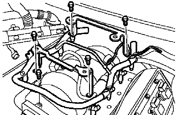 19. Remove 2 nuts securing engine harness to inlet manifold