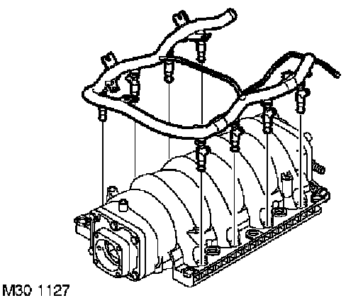 10. Fit fuel rail with injectors to inlet manifold and fit bolt.