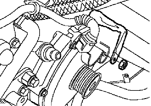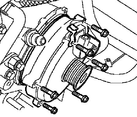 7. Remove remaining bolt securing A/C compressor drive belt tensioner and remove tensioner.