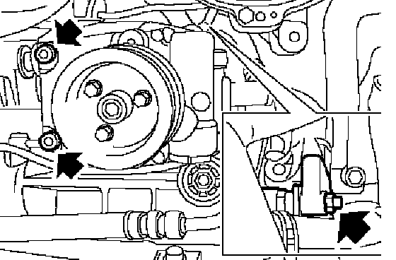 4. Position PAS pump to mounting, fit Allen bolts and securing nut. Tighten Allen bolts to 10 Nm (7 ft. lbs.) and securing nut to 25 Nm (18 ft. lbs.).