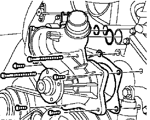 15. Support coolant rail pipes and remove coolant pump, remove and discard coolant pump 'O' rings.