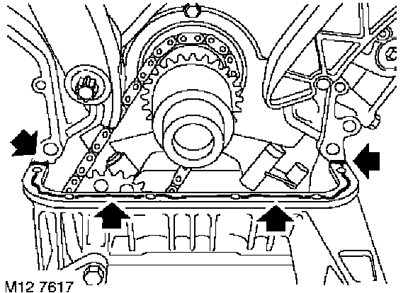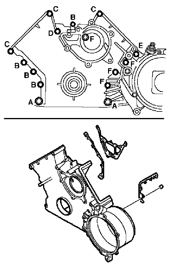 6. Fit 6 bolts securing lower timing gear cover to upper oil sump and tighten to 12 Nm (9 ft. lbs.).