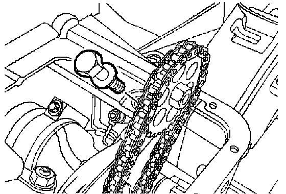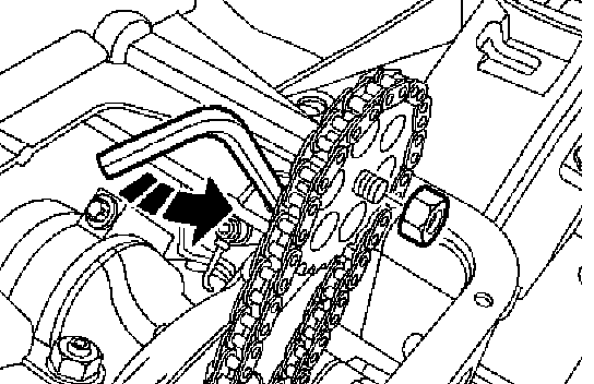9. Rotate oil pump drive chain adjuster to give a deflection of 8 mm (0.314 inch) to 12 mm (0.470) midway between sprockets.