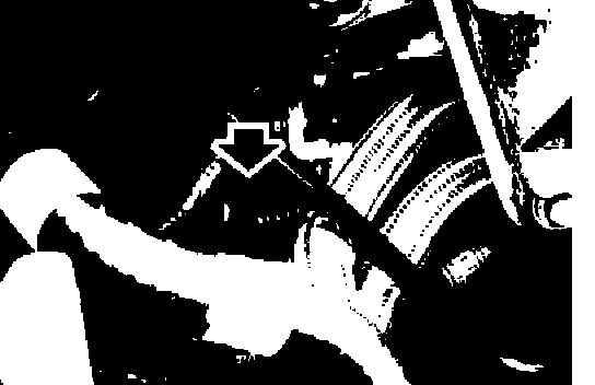 14. Release clip, disconnect radiator bottom hose from thermostat housing and remove bolt securing 'P' clip.