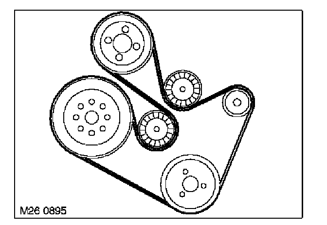 6. Fit ancillary drive belt to all pulleys except tensioner pulley.