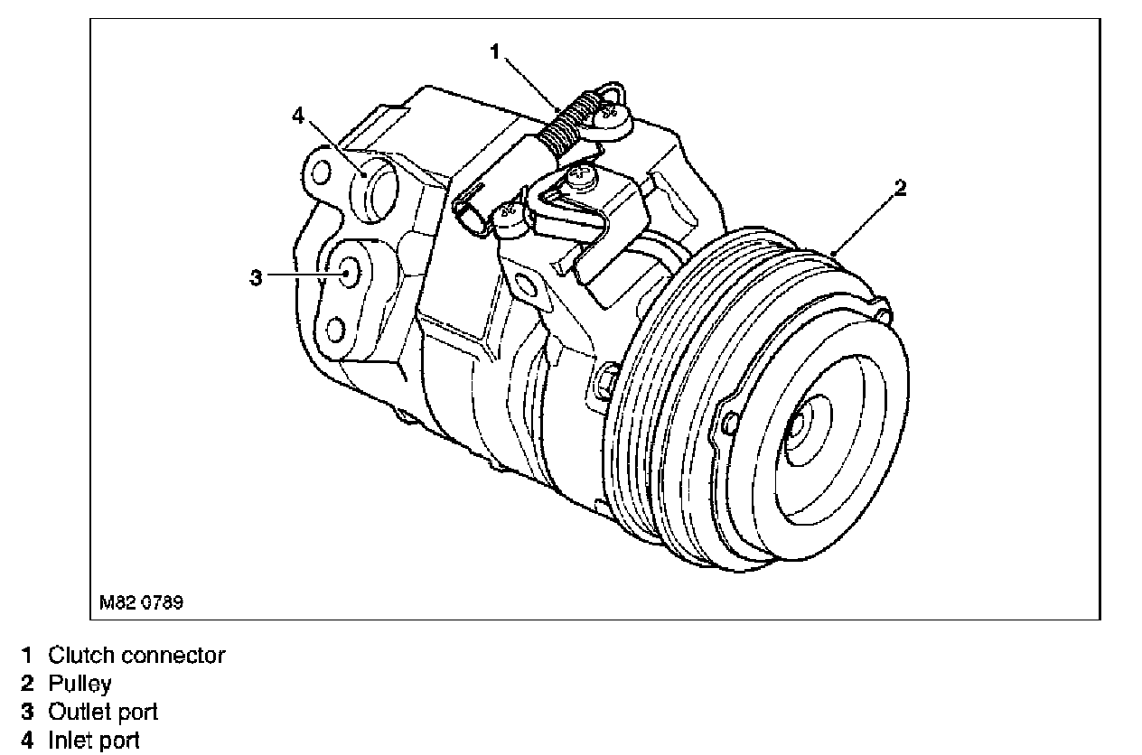 The compressor is a fixed displacement unit attached to a mounting bracket on the engine. A dedicated drive belt on the engine crankshaft drives the compressor via a pulley and an electrically actuated clutch. Operation of the clutch is controlled by the ATC ECU.