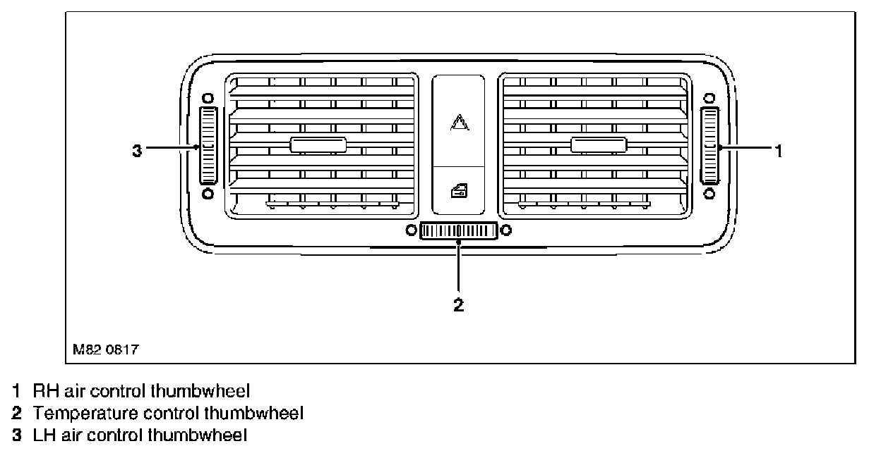 The ATC ECU is installed in the centre of the fascia. An integral control panel contains push switches and rotary switches/knobs for system control inputs. Orange tell-tale LED's in the switches and switch surrounds illuminate to indicate the current settings of the system. The rotary temperature switch is graduated in degrees Celsius, except on USA vehicles, where it is graduated in degrees Fahrenheit.
