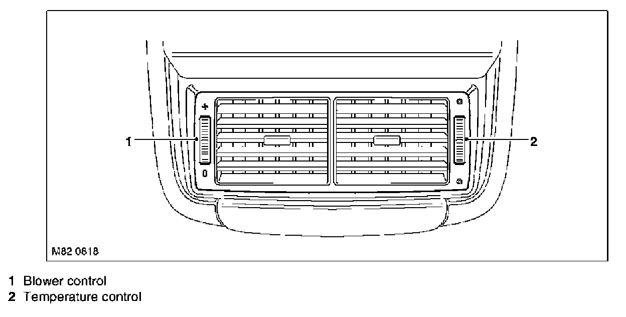The blower is installed between the front seats, in the rear face air duct, and consists of an open hub, centrifugal fan powered by an electric motor. Operation of the electric motor is controlled by a thumbwheel on the rear passenger face vent via the ATC ECU and an output stage (voltage amplifier) installed in the outlet of the fan.