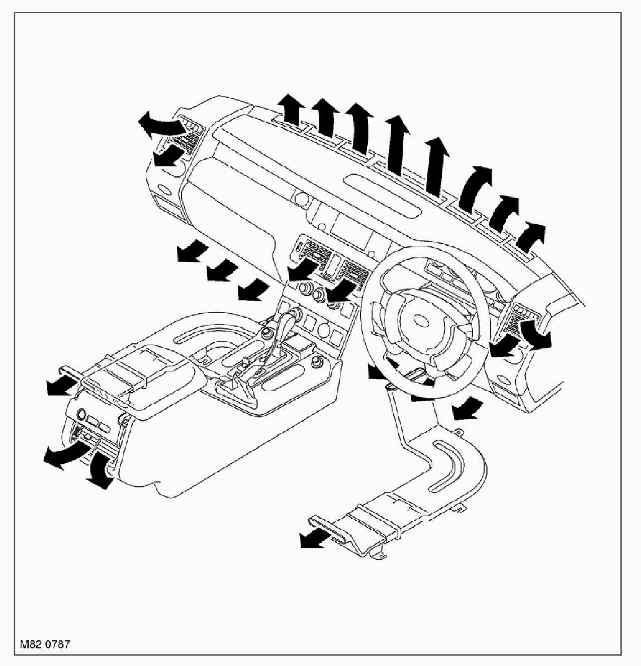 In the fascia, the distribution ducts are connected to fixed vents for the windscreen and side windows and adjustable vent assemblies for face level air. An adjustable vent assembly is also installed on the rear of the cubby box for rear face level air. The footwell outlets are fixed vents formed in the end of the related distribution ducts.