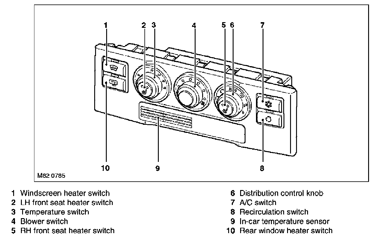 - Recirculation Switch: For manual selection of fresh or recirculated air. A LED above the switch is illuminated when recirculated air is selected.