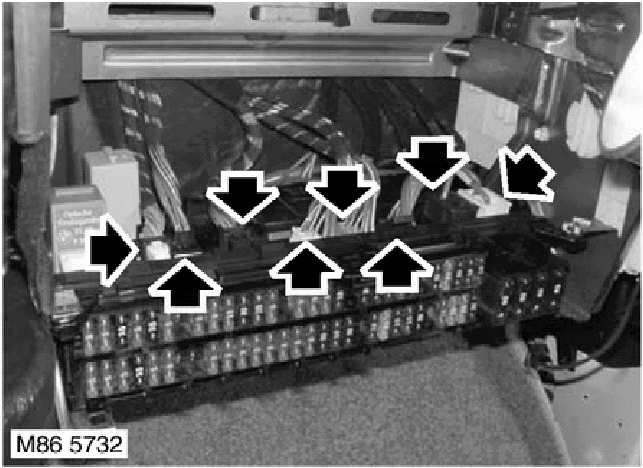 3. Noting fitted position, disconnect 8 multiplugs from fuse box.