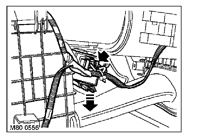 5. Remove screw securing footwell heating duct to carrier. Remove duct.