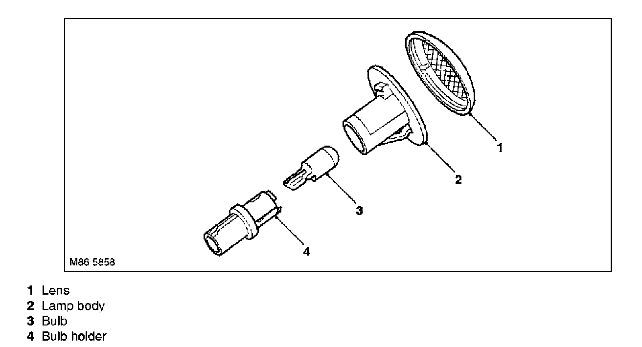 Each lamp uses a 5 W festoon type bulb. The bulbs do not have a back-up strategy in the event of failure, although the LCM can detect the failure and alert the driver via the instrument pack message centre.