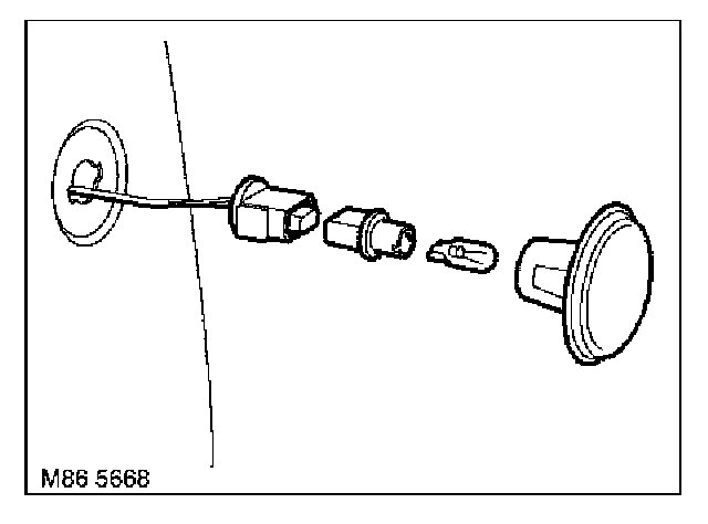 1. Push side repeater lamp towards front of vehicle. Release clip and ease lamp from wing.
