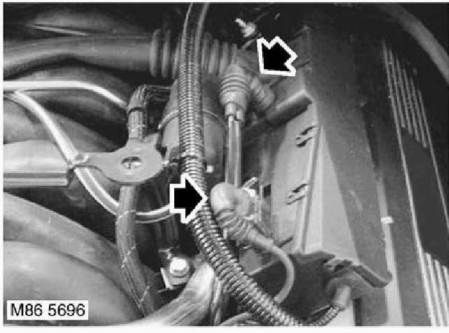 23. Release vacuum reservoir and mounting bracket from LH fuel injector harness securing stud.