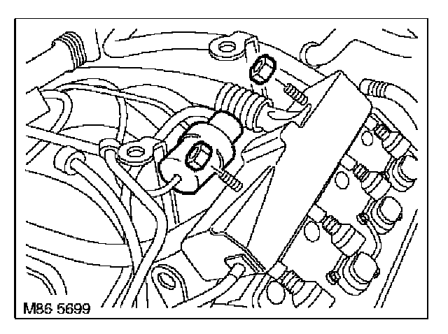 14. Fit secondary air vacuum switching valve to RH fuel injector securing stud.
