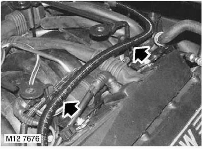 21. Fit vacuum reservoir and mounting bracket to LH fuel injector harness securing stud.
