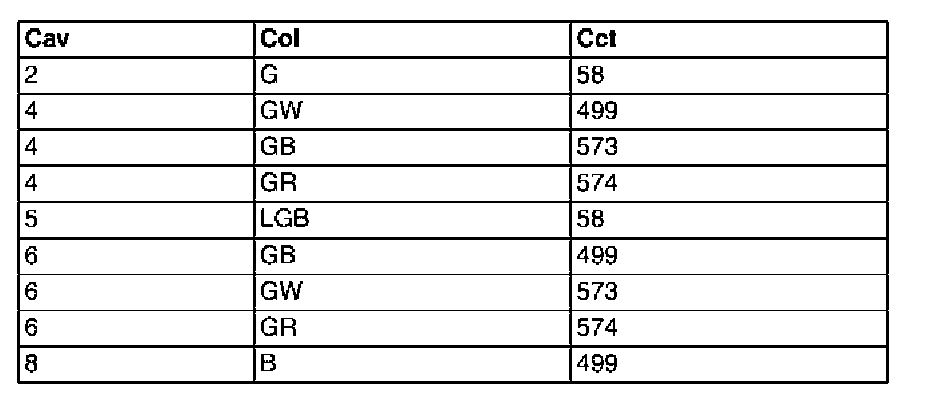 3. Cct: Identities the model or feature which uses the wire. 'ALL' means applicable to all models in the range fitted with the feature or system in question. In instances where different models, features or systems require different colour wires to be fitted in a cavity each instance of the cavity is included in the pin-out table.