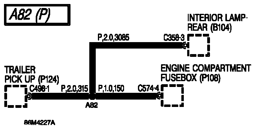 The length of the wire in millimeters. This can be used to locate internal harness splices; look for the shortest wire between the joint and connector. For example, it can be seen that C574-4 is 150mm from joint A82.