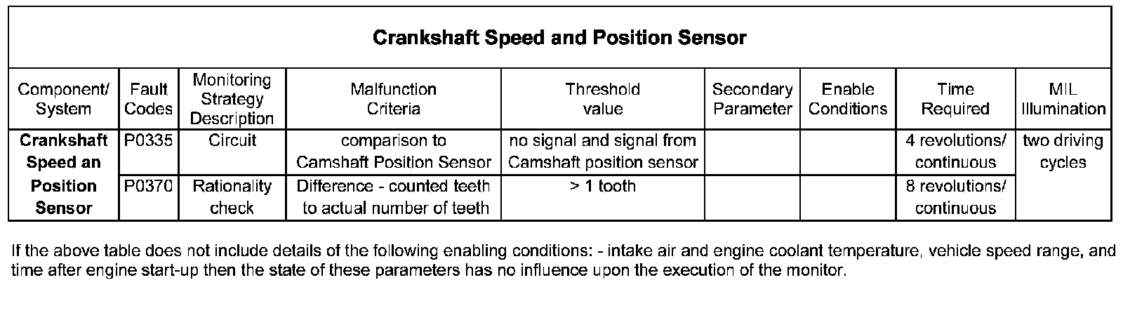1. A signal has been received from the Camshaft Sensor but no signal has been received from the Crankshaft Speed and Position Sensor.