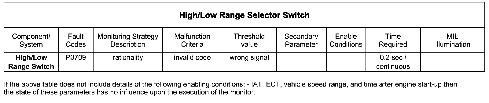 There is one diagnostic check for the high/low range selector switch, an error is detected if:-