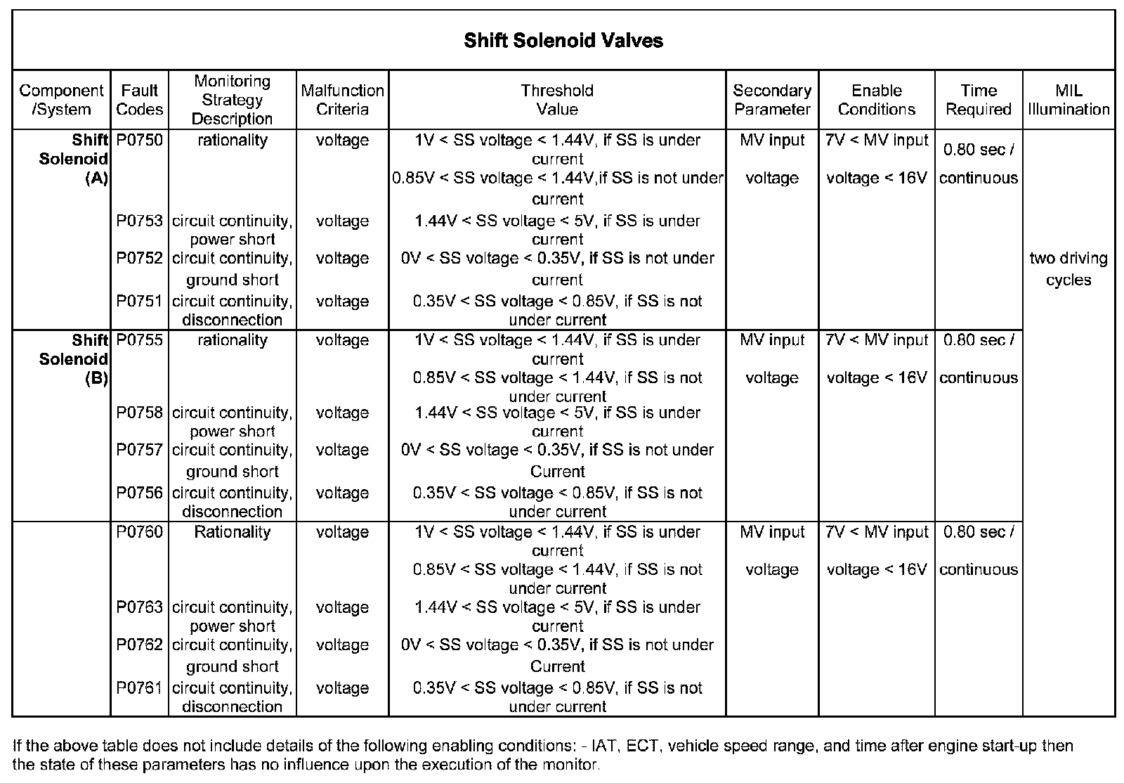 3. The SS voltage is greater than 0 V but less than 0.35 V with the solenoid not under current. This indicates a short circuit to ground condition.