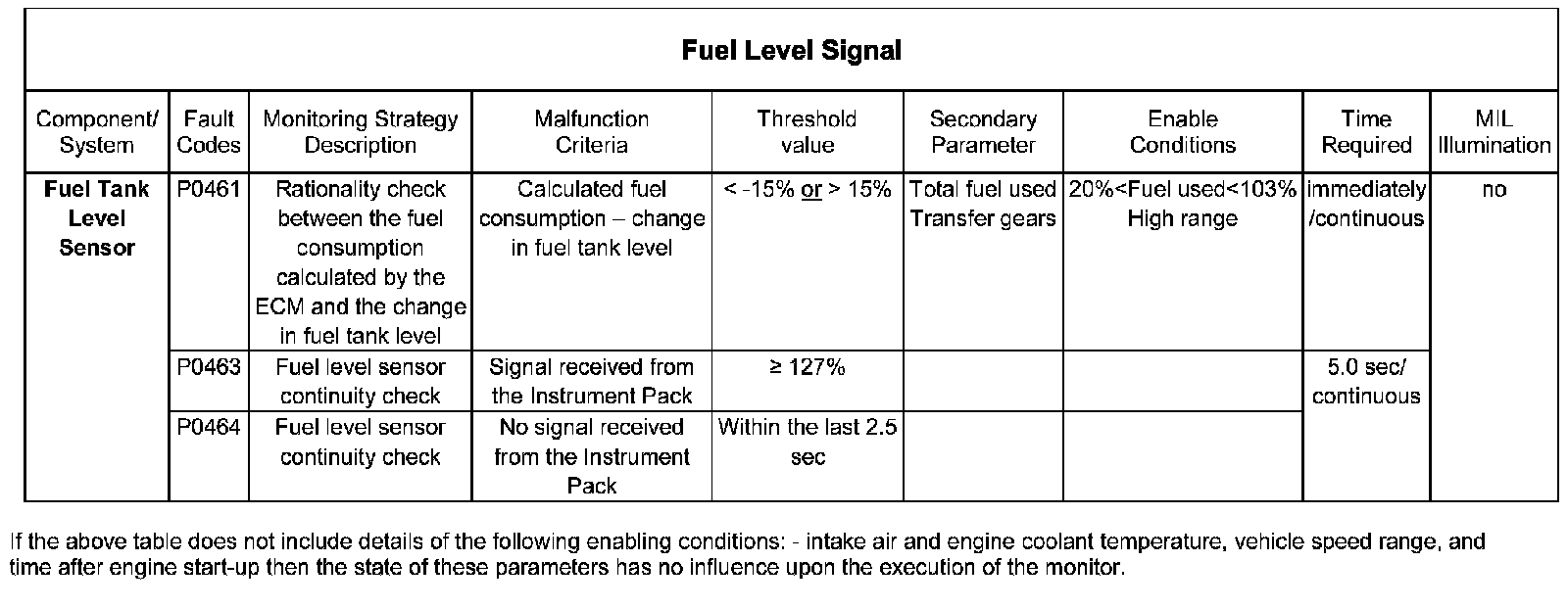 3. No fuel level signal has been received from the instrument pack within the last 2.5 seconds.