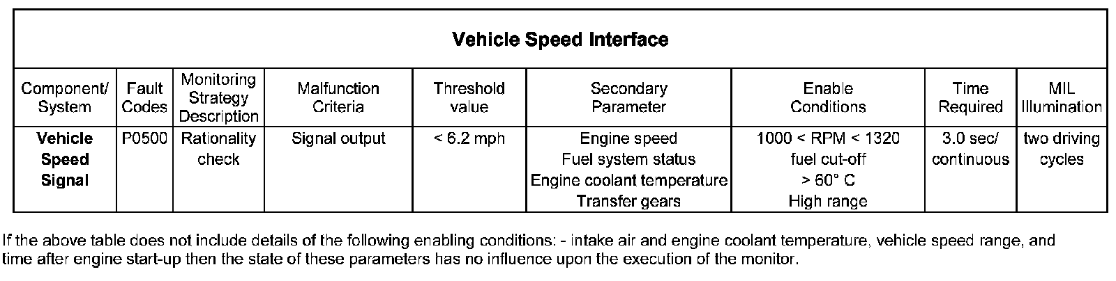 There is one Vehicle Speed Interface diagnostic checks, a fault is detected if:-