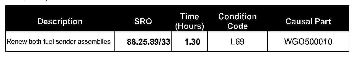 11. Verify correct fuel gauge operation and reset adaptions as specified in GTR Workshop Manual.