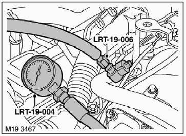 9. Note fuel pressure gauge reading. Fuel pressure should be between 3.25 and 3.75 bar.