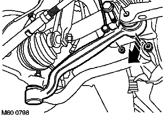 7. Tighten bolt securing lower arm to subframe to 165 Nm (121 ft. lbs.) plus a further 90°.