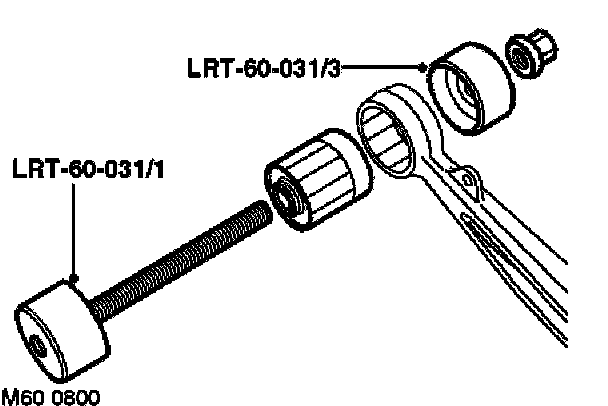 6. Using LRT-60-031/1 and LRT-60-031/2 remove lower arm bush.