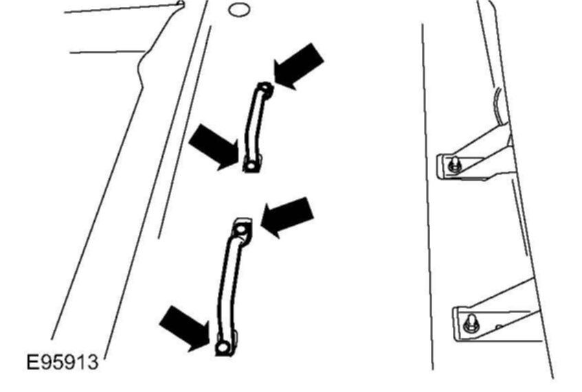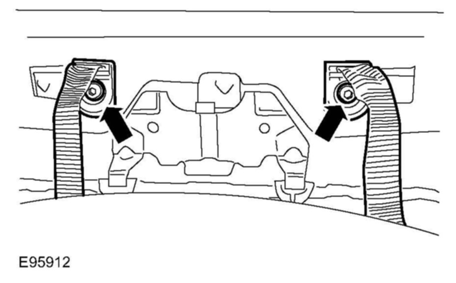 39. Position spare wheel release straps, install bolts, and tighten to 25 Nm (18 lbf. ft).