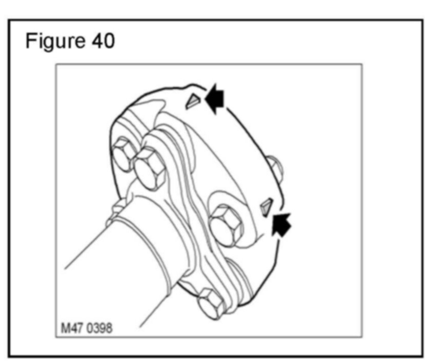 13. Install the coupling and flange with arrows on coupling pointing towards securing bolts as illustrated. (Figure 40)