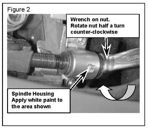 3. Position a 13 mm box end wrench onto the nyloc spindle nut at the back of the housing (Figure 2).