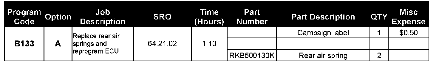 Warranty claims should be submitted quoting program code B133 together with the option code. This will result in payment of stated time and where applicable parts/miscellaneous expense.