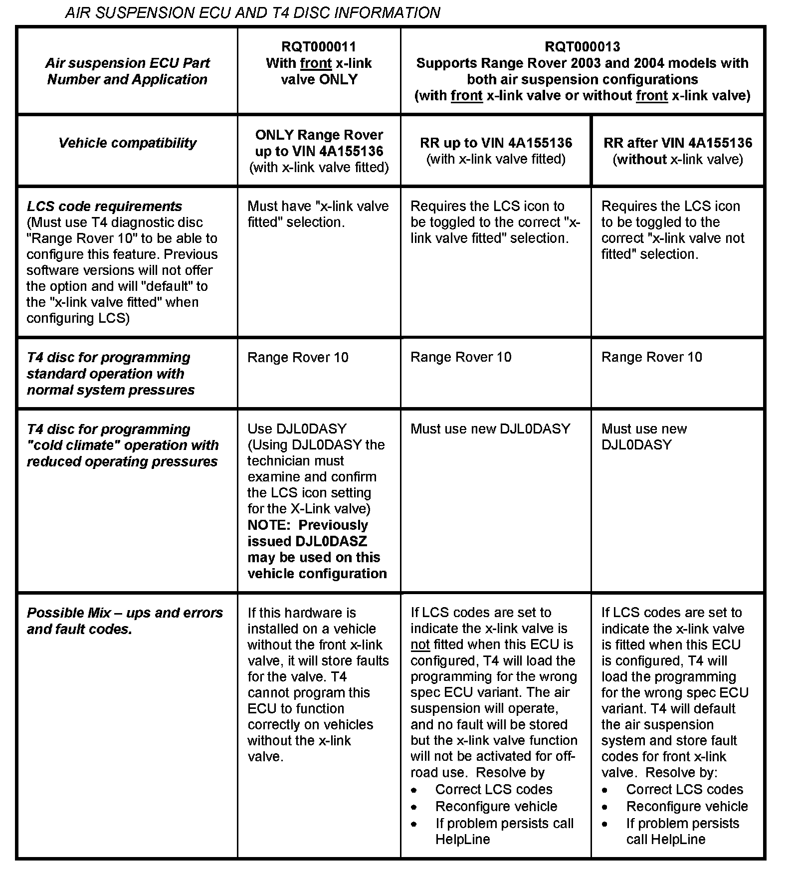 T4 disc DJL0DASY (Air Suspension Diagnostics) is distributed in conjunction with this TIB. The disc DJL0DASZ was sent to Retailers in conjunction with TIB 64/02/03/NAS distributed in June 2003. DJL0DASZ is replaced by DJL0DASY.