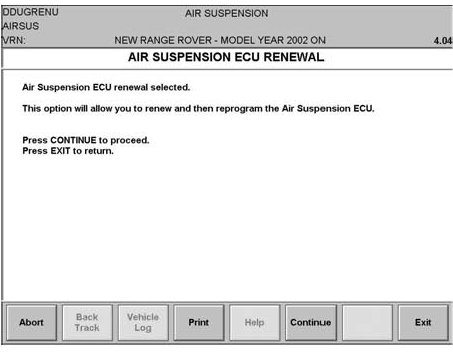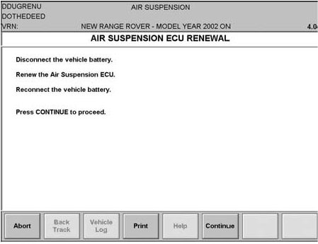 Do NOT replace the Air Suspension ECU and do NOT disconnect battery.
