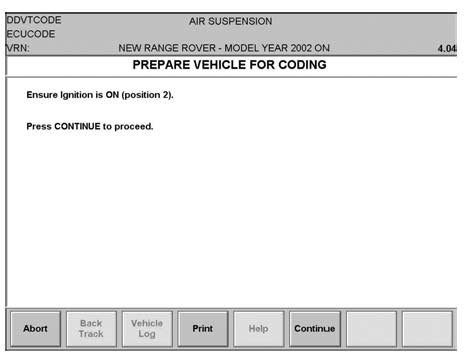 15. Ensure ignition is ON and then press the "Continue" button on the screen shown to proceed.