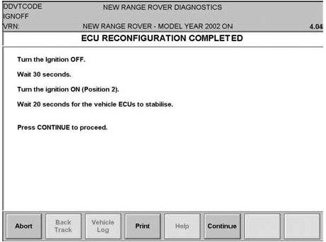 The revised coding will be operable once the ignition cycle described in this screen has been performed. The time delays on the screen must be followed.
