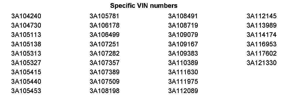 AFFECTED VEHICLE RANGE: